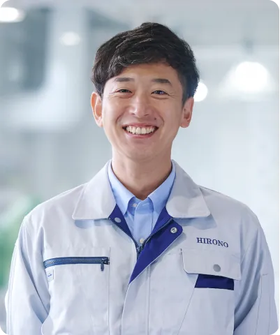 2016年、早稲田大学商学部卒。その後、大手総合電機メーカーに入社(航空防衛事業の営業担当)。2020年に、廣野鐵工所入社。2025年に 取締役 営業部長に就任。