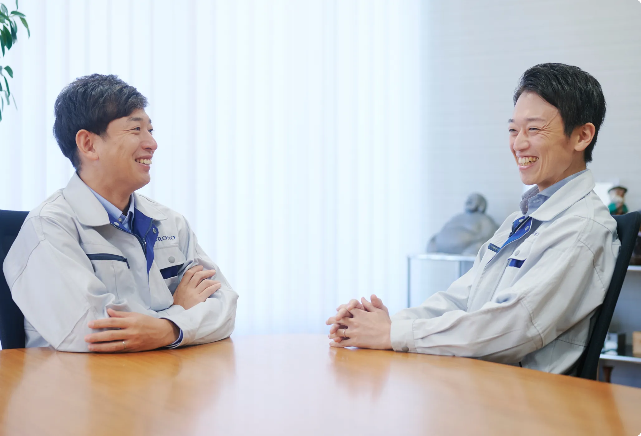 人を大切にする企業文化の中で育まれた、人間性と挑戦心こそが成長の原動力です。その環境で経験と知見を磨いてきた次世代を担う工場長と営業部長。兄弟でもある二人が、ものづくりへの想い、新たな挑戦、そして未来の仲間へのメッセージを語り合いました。