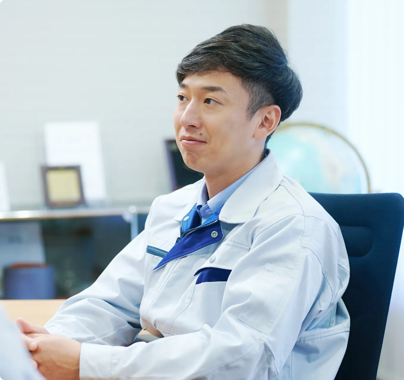 私は父(現社長)から、「会社の利益は、社員が汗水垂らして働いた結果ということを忘れないように」と教えられました。だからこそ、社員を大切にし、見守っていたいんです。例えば、当社には社長室はありません。事務所スペースに、他の社員と同じように社長のデスクがあるというスタイルです。社長は日頃から社内を歩きながら、一人ひとりの顔を見渡して、「大丈夫か?」とか「元気そうやな」と声をかけています。仕事の効率化を進めることも大切ですが、こういった人と人のつながりを大切にする企業文化は守っていきたいですね。
