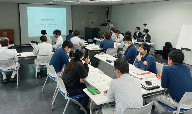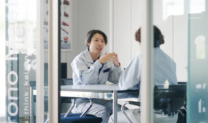 廣野鐵工所では、社員一人ひとりの成長をサポートするために、年6回の面談を実施しています。年度目標の設定から進捗確認、キャリアの方向性まで、上司と丁寧に話し合う時間です。さらに、改善活動や社内研修を通じて自分で考え、成長する力を育成。挑戦と学びを継続的に支援することで、社員が自分の成長を実感できる環境を整えています。
